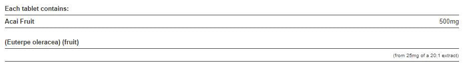 Acai jagode vsebujejo znatne količine vitamina C in so izjemen vir polifenolov, vključno z rutinom, katehini in antocianini. Vse te sestavine so močni antioksidanti, ki v kombinaciji tvorijo močno obrambo pred prostimi radikali in toksini, kar je ključni dejavnik pri upočasnjevanju procesa staranja.