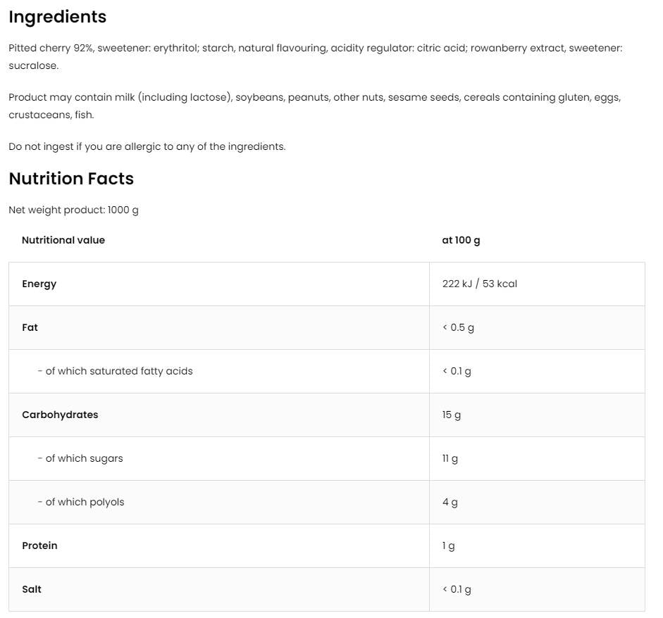 Znanstvene študije so pokazale, da lahko vsebnost antocianinov v češnjah prispeva k boljšemu spanju in uravnavanju srčnega utripa. Poleg tega vlaknine v češnjah izboljšujejo prebavo in lahko pomagajo pri nadzoru telesne teže, zaradi česar je izdelek odlična izbira za ljudi, ki stremijo k zdravemu življenjskemu slogu.