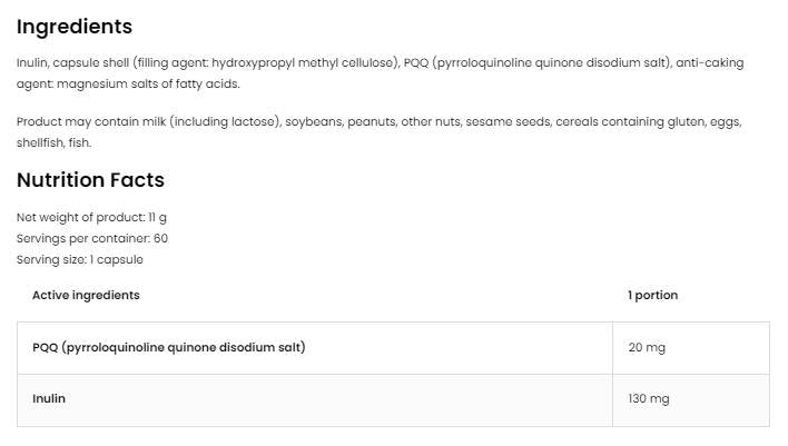 Pomembno je vedeti, da jemanje PQQ ni primerno za vsakogar. Osebe z alergijami na sestavine izdelka, nosečnice in doječe matere naj se pred uporabo posvetujejo z zdravnikom.