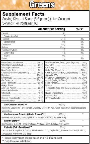 Antioksidanti: Bogat antioksidativni kompleks izdelka Orange OxiMega GREENS vključuje izvlečke zelenega čaja, maline, jagode, borovnice in acai jagode. Ti antioksidanti se borijo proti prostim radikalom, ki so strupeni za celice, in optimizirajo zdravje in tonus.