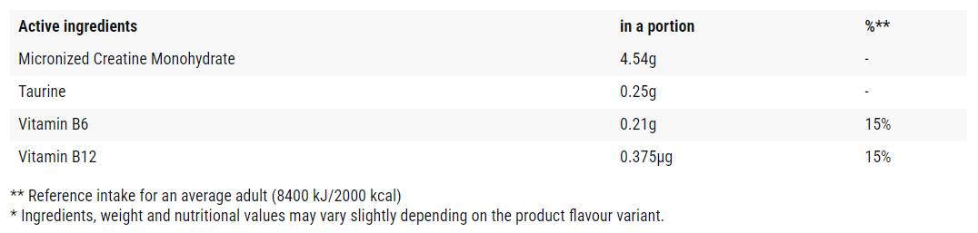 Kreatin monohidrat je morda najbolj raziskan dodatek v športni industriji. V zadnjih dveh desetletjih je kreatin monohidrat obvezna sestavina prehrane vsakega športnika, saj zagotavlja maksimalen volumen in moč mišic. Preko 200 znanstvenih raziskav na univerzah in v laboratorijih po vsem svetu priča o varnosti in učinkovitosti te sestavine.