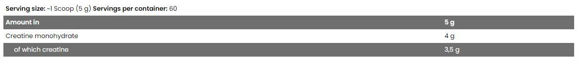 Polnih 4 g kreatin monohidrata iz visokokakovostnih surovin.