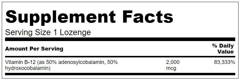 Za hitro delujočo, dolgotrajno in energijsko prehrano, Swanson Aktiviran kompleks B12 vsebuje aktiviran, za celice pripravljen adenozilkobalamin za hitro povečanje energije skupaj s hidroksokobalaminom, visoko zadrževalno obliko vitamina, ki ohranja to energijo in povečuje vzdržljivost. Naše tablete brez sladkorja, sladkane s stevio in ksilitolom ter naravno aromatizirane s češnjo, uporabljajo Supplemelts™ tehnologija za zagotavljanje optimalne biološke uporabnosti.