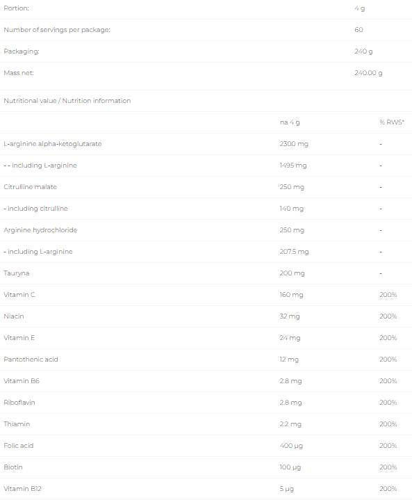 • Optimizirana formula: BOOM je obogaten z L-argininom in L-citrulinom, ki delujeta v sinergiji za povečanje dušikovega oksida, izboljšanje mišične črpalke in krvnega obtoka.