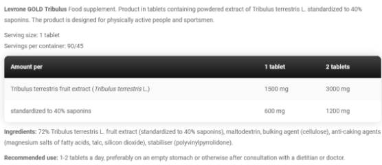 Zlati Tribulus 1500 je visokokakovostno prehransko dopolnilo, ki vsebuje izvleček zelišča Tribulus Terrestris.