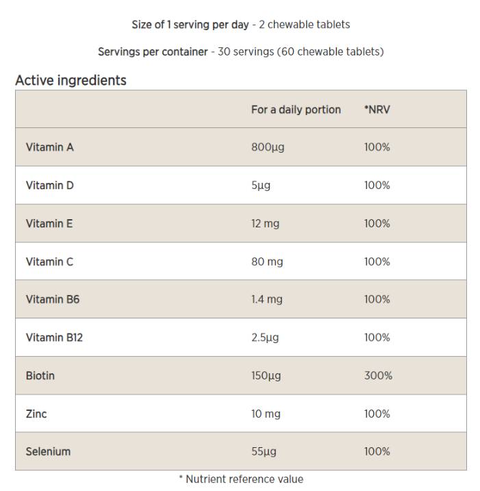 navodila: Vzemite 2 žvečljivi tableti na dan.