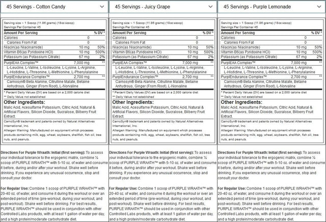 Znanstvene raziskave kažejo, da jemanje esencialnih aminokislin (EAA) poveča sintezo mišičnih beljakovin, ki so bistvenega pomena za rast in okrevanje. Aminokisline v Purple Wraath se absorbirajo bistveno hitreje kot standardne sirotkine beljakovine, zaradi česar so izjemno učinkovite. Formula vključuje: