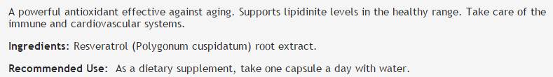 Sestavine: izvleček korenine resveratrola (Polygonum cuspidatum).