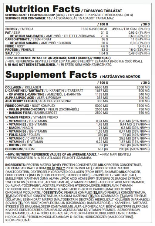 Nadomestek obroka, bogat z beljakovinami in vlakninami, v kombinaciji z dodanimi sestavinami, ki podpirajo dieto.