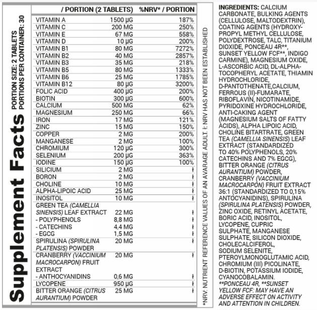 Izdelek zagotavlja vrhunski kompleks najpomembnejših vodotopnih in v maščobah topnih vitaminov in mineralov. Pri razvoju njegove sestave smo poskrbeli ne le za popolno multivitaminsko rešitev za ženske, temveč smo zahvaljujoč visoki vsebnosti antioksidantov prispevali k mladostni vitalnosti ter ohranjanju lepote in zdravja.