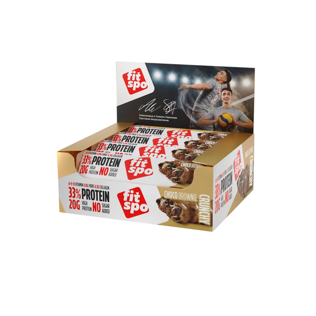 Poskusi FitSpo Hrustljav čokoladni brownie Delight – večplastna beljakovinska ploščica ki združuje bogat čokoladni okus in hranilna vrednost Uživajte v mehak čokoladni nadev , prelito z karamela brez sladkorja , hrustljav kakavovi hrustljavi izdelki in zavit v prava mlečna čokolada .