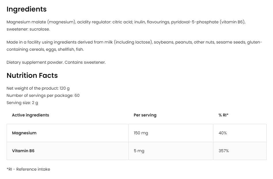 Magnezijev malat v prahu 150 mg - 120 gramov