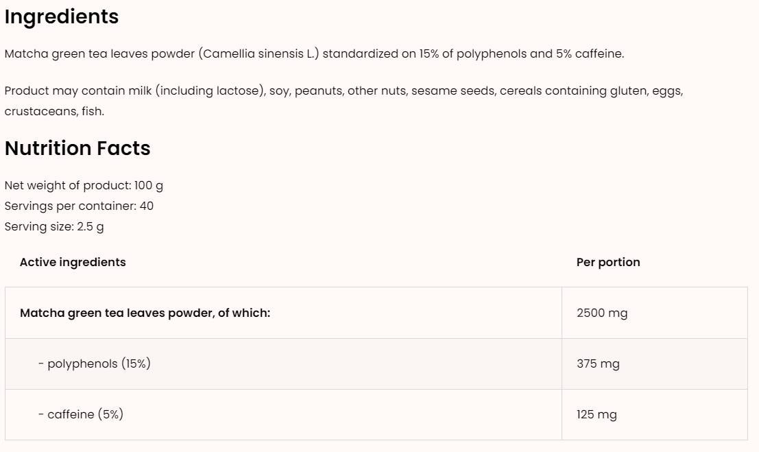 Pomembno je vedeti, da se morajo ljudje z alergijami na kofein ali srčnimi boleznimi pred jemanjem matche posvetovati z zdravnikom. Prav tako lahko prekomerno uživanje povzroči škodljive učinke, zato je najbolje, da uživate zmerno.