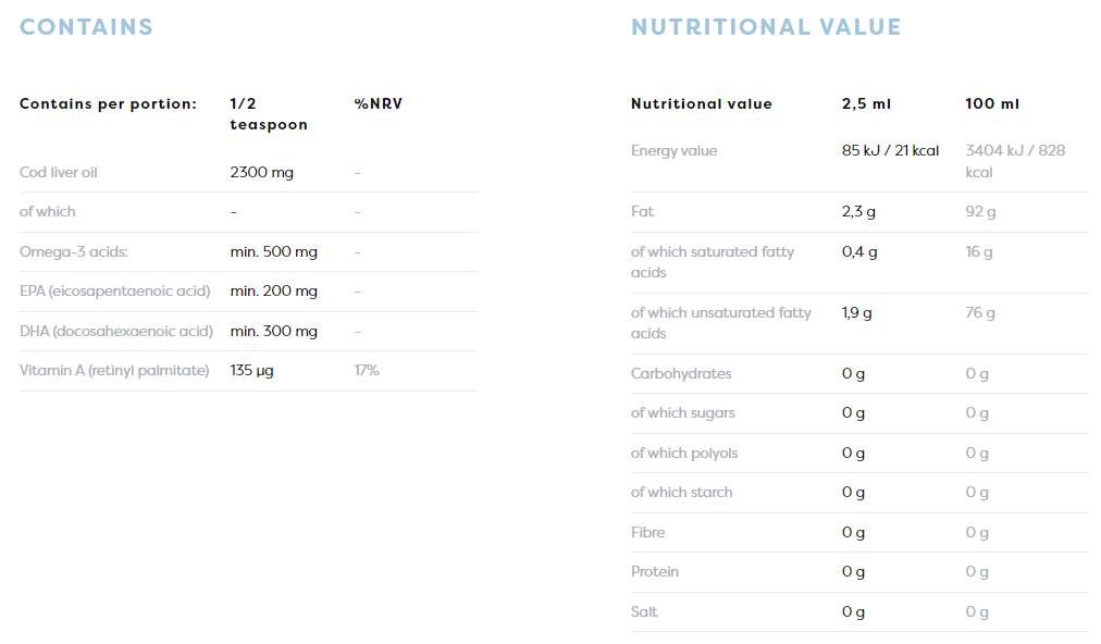 Naravni koncentrat ribjega olja v tem izdelku je posebej nadzorovana za prisotnost nevarnih elementov, kot so težke kovine in živo srebro.