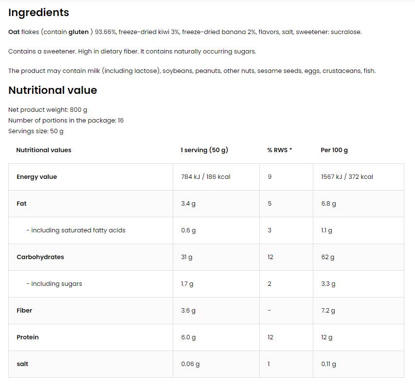 Ovsena kaša Oat My Day je visoko hranljiv izdelek, bogat z vlakninami in koristnimi hranili, ki nudi številne koristi za zdravje. Uživanje ovsenih kosmičev lahko pomaga pri prebavi, zahvaljujoč visoki vsebnosti topnih vlaknin, ki pomagajo uravnavati prebavila. Poleg tega lahko poveča vašo raven energije, kar je še posebej koristno pri aktivnem življenjskem slogu.